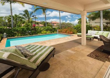 A totally unique Wailea residence!! The indoor/outdoor relationship goes beyond retractable sliding glass pocket doors. You will love the formal entry through the sophisticated double entry gates featuring a fully enclosed trellised foyer with fountain & pond. Then, onto the courtyard featurin [...]